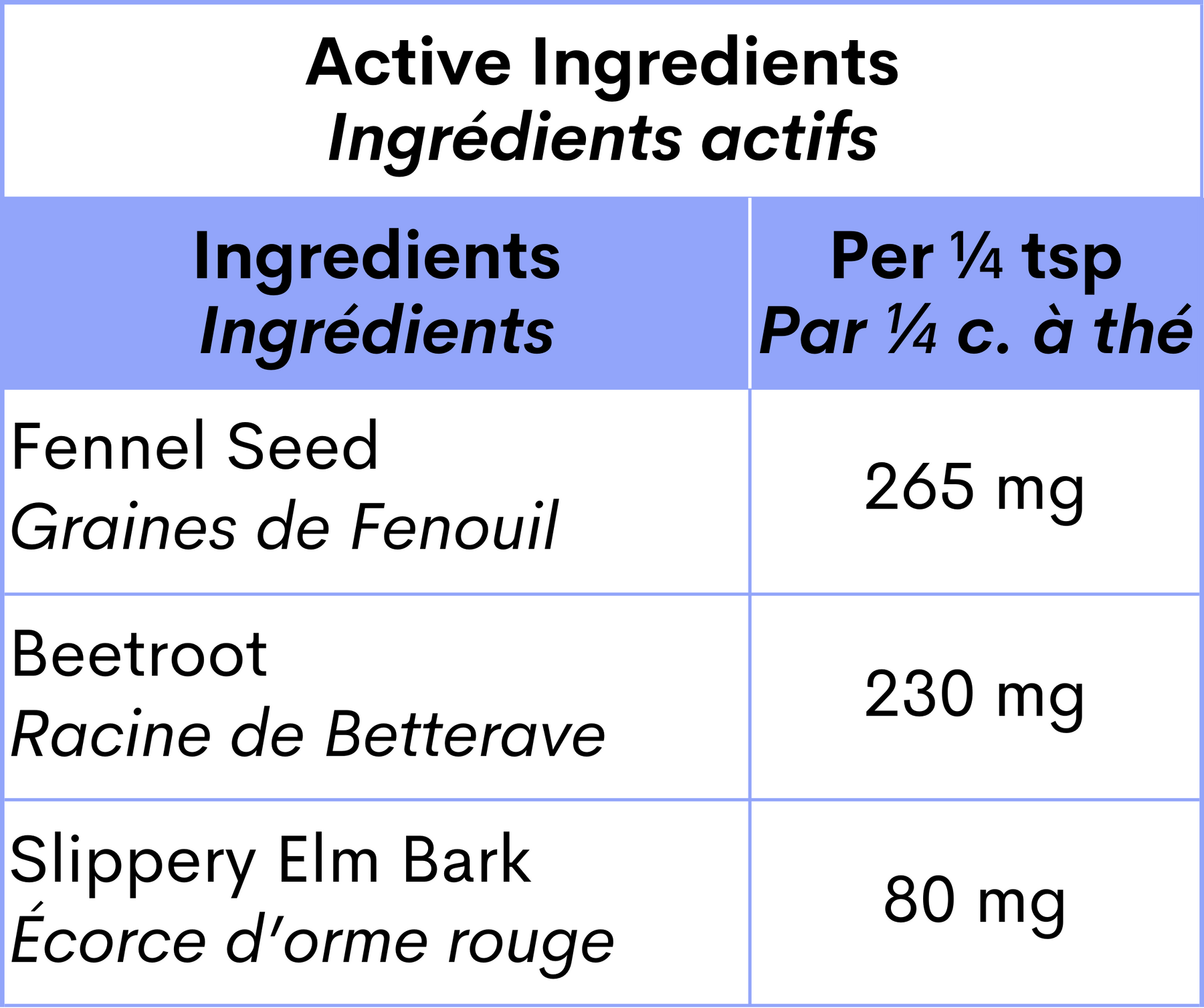 Ingredients: Fennel Seed, Beetroot, and Slippery Elm Bark.