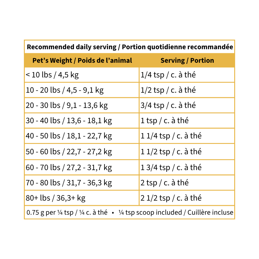 For Best Results: mix the recommended amount into your dog or cat’s food. Tip - Adding water or broth can make mixing easier and enhance palatability.
