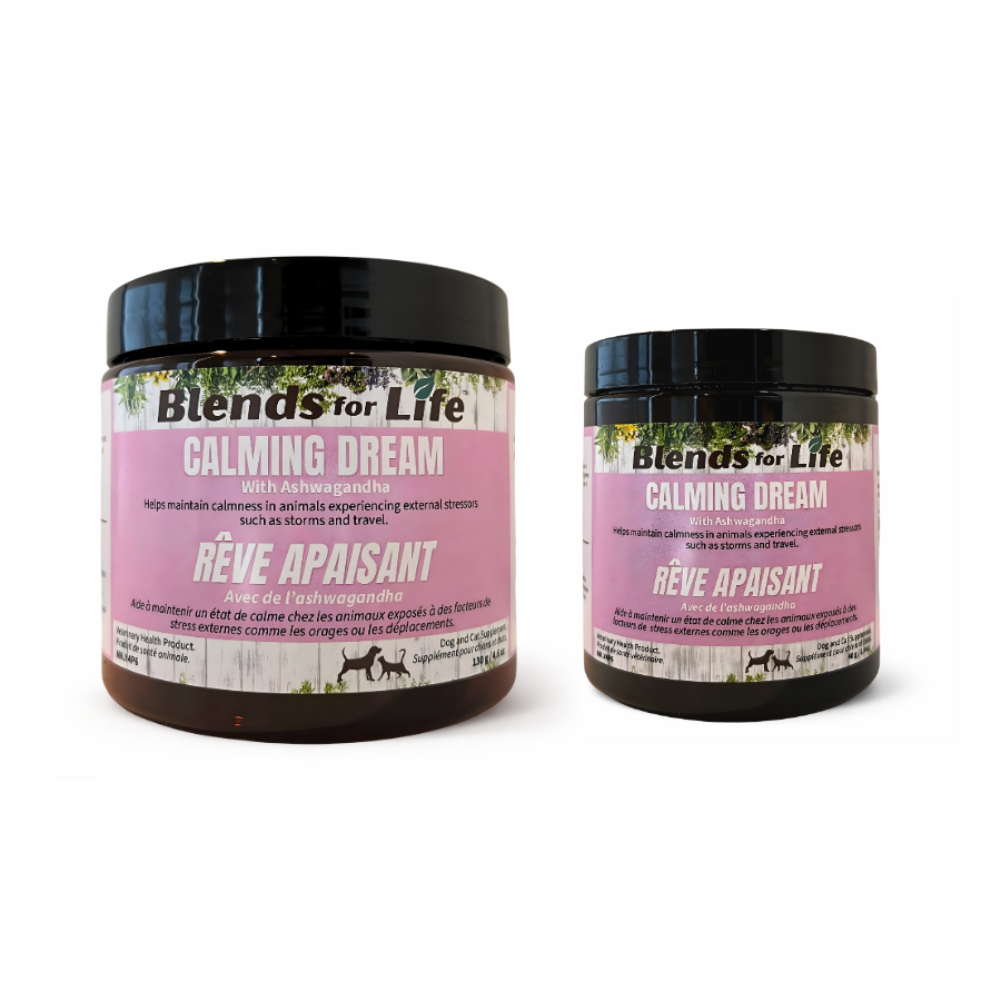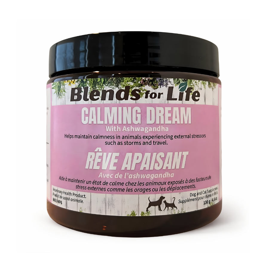 These herbs help maintain a sense of calm in dogs and cats experiencing external stressors. Valerian root and Ashwagandha root may help with calming effects, anxiety, separation stress, difficulty sleeping, and overall well-being. Chamomile may help with calmness and digestive health, and is often used to promote relaxation.