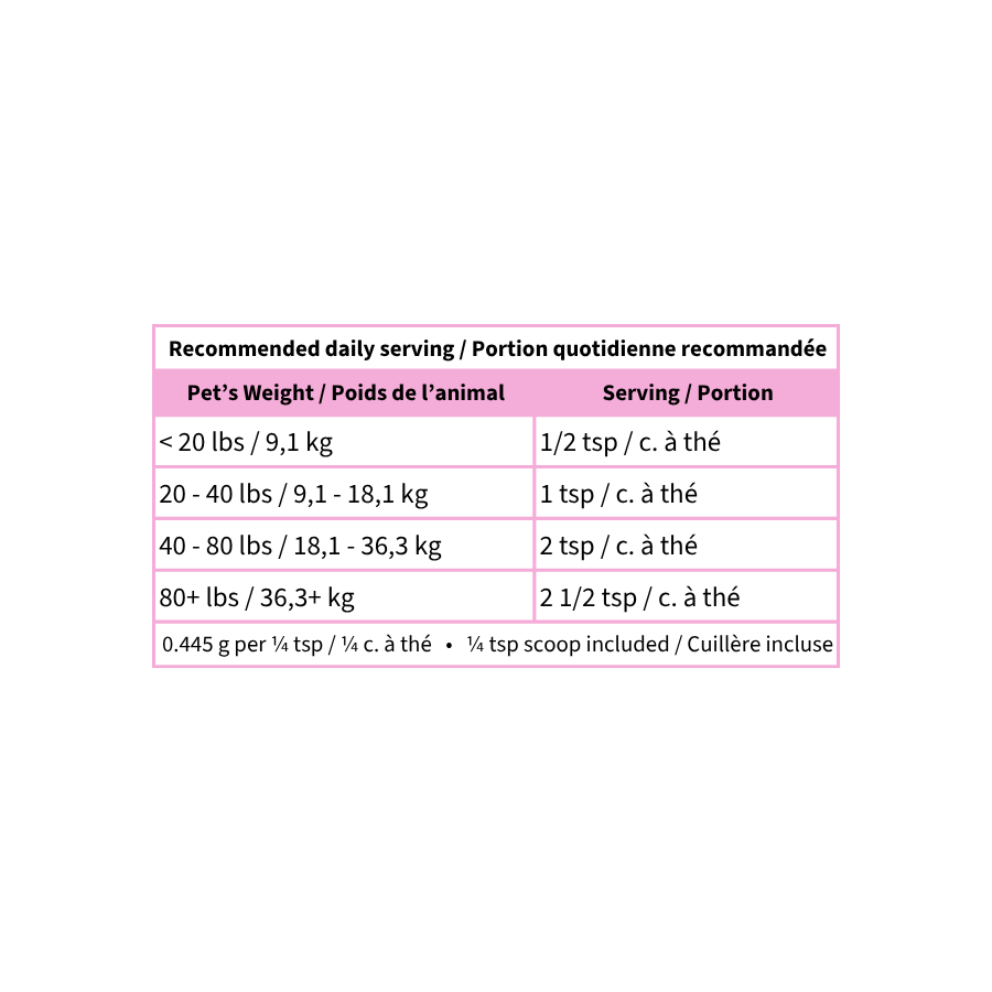 For Best Results: mix the recommended amount into your dog or cat’s food. Tip - Adding water or broth can make mixing easier and enhance palatability.